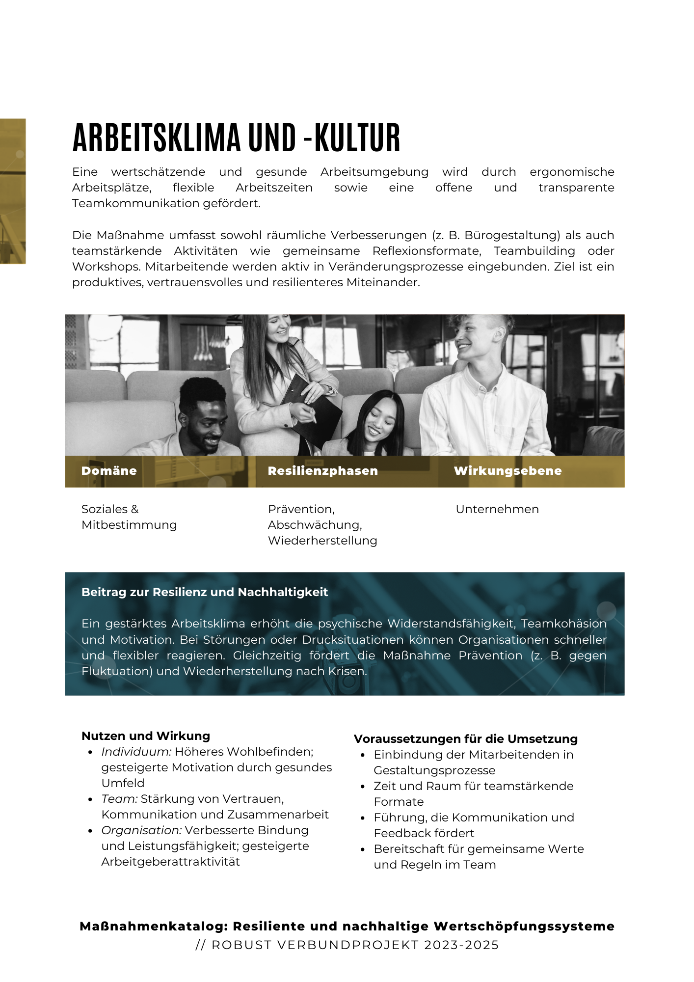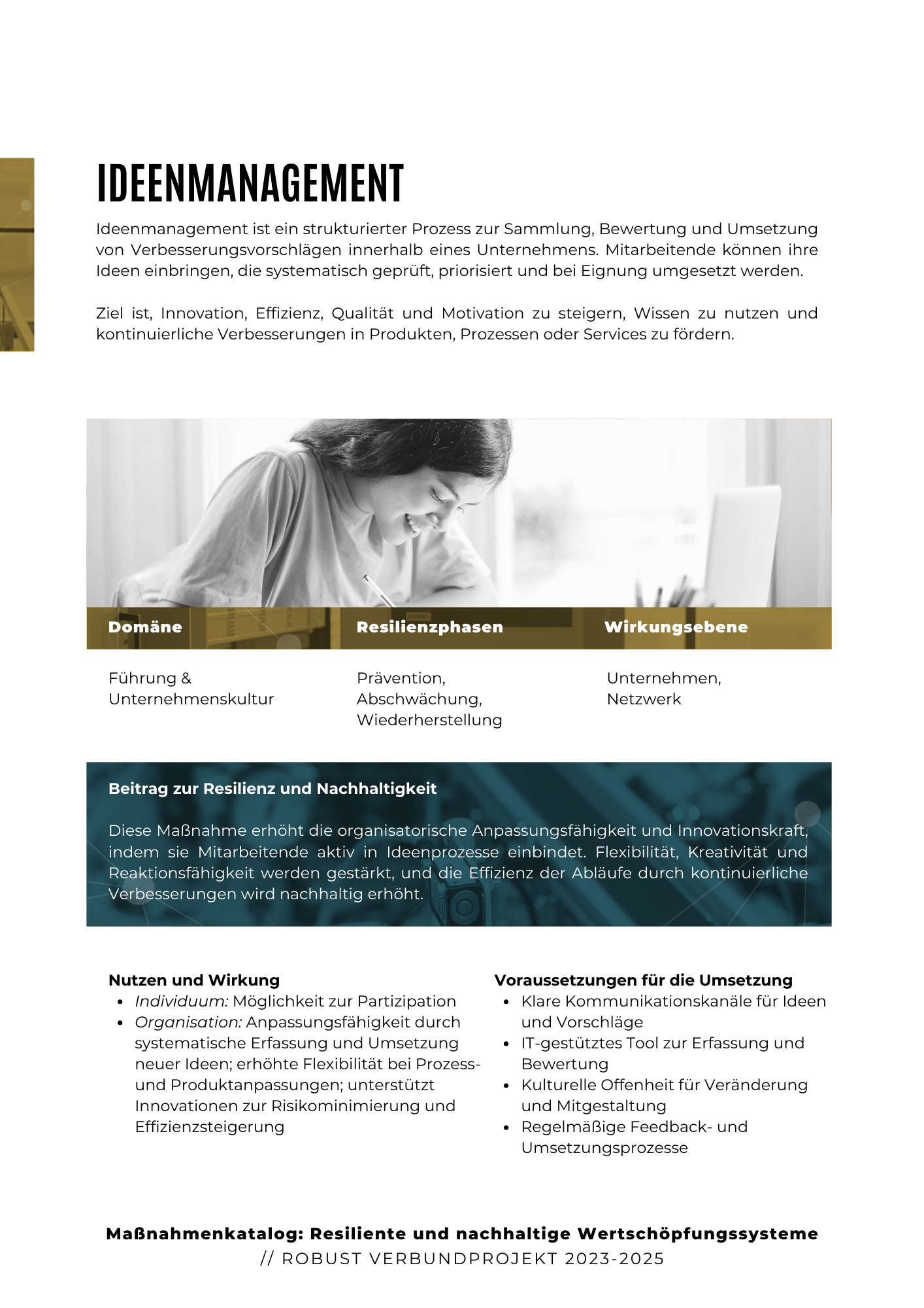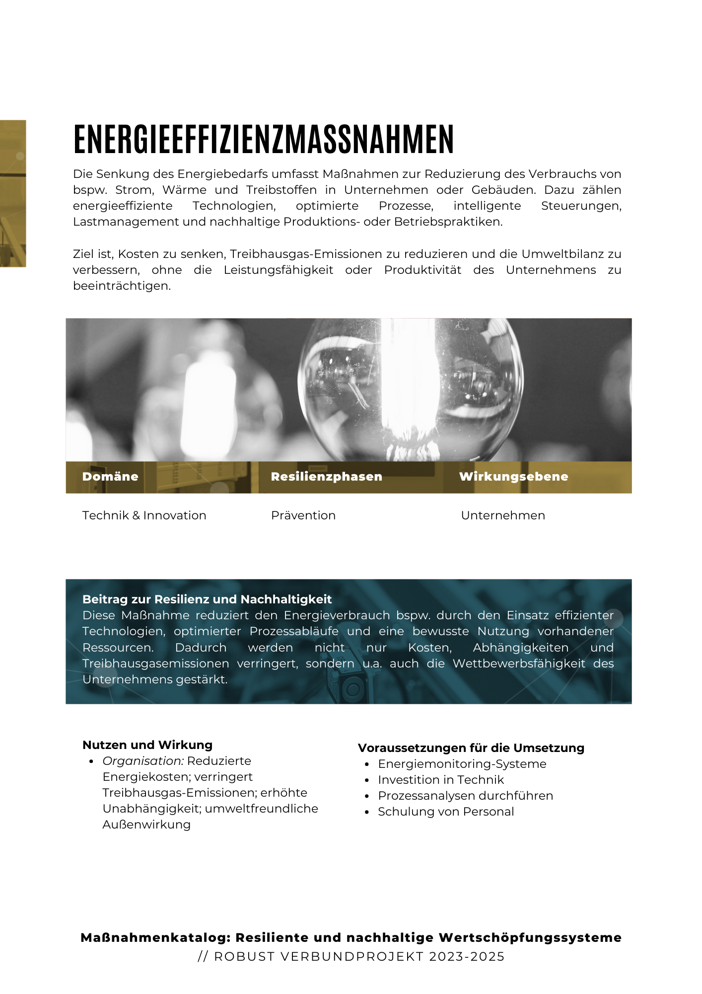 Die Maßnahmen basieren auf einer interdisziplinären und wissenschaftlich fundierten Zusammenarbeit innerhalb des Verbunds. Sie bieten praxisnahe Lösungen, die sowohl auf die technischen Anforderungen als auch auf die organisatorischen Herausforderungen von Unternehmen eingehen. Dabei wurde besonderer Wert auf die Anpassungsfähigkeit der Maßnahmen gelegt, sodass sie flexibel in unterschiedlichen Unternehmensstrukturen und -kulturen angewendet werden können.